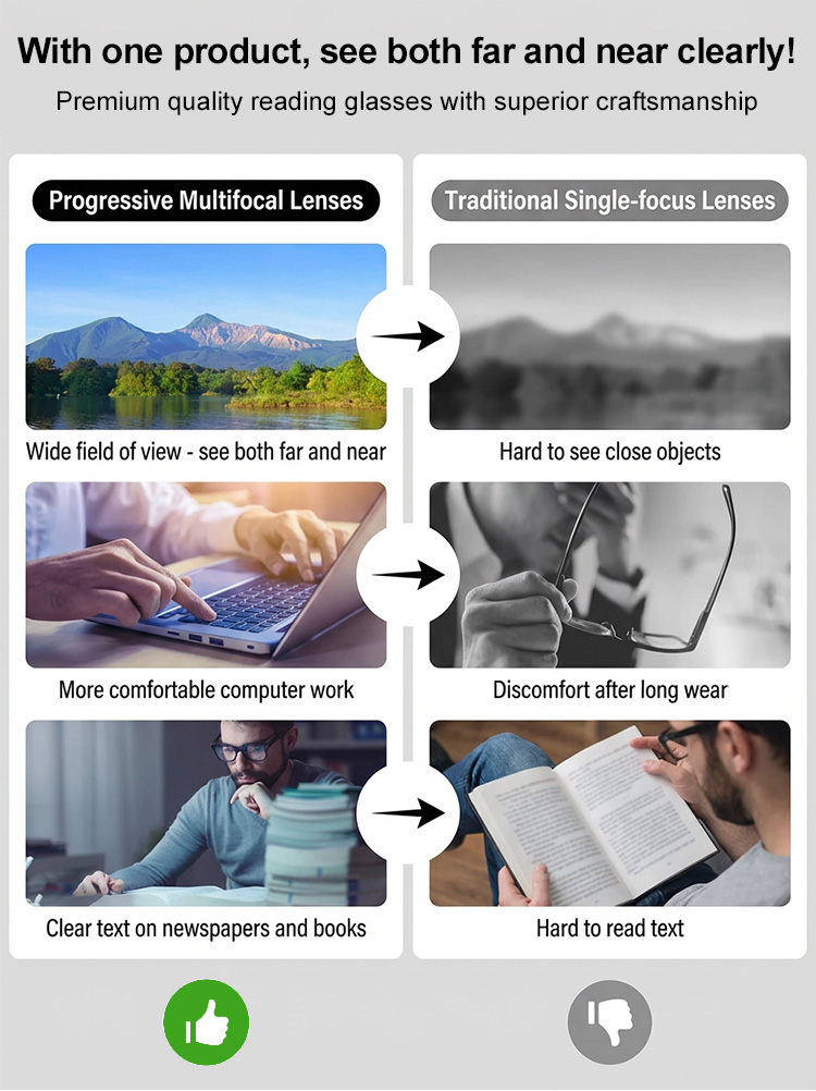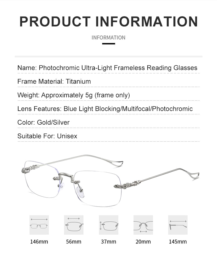 German Tech Intelligent Progressive Reading Glasses | Auto Focus Photochromic | Anti Blue Light Titanium Rimless 👓☀️