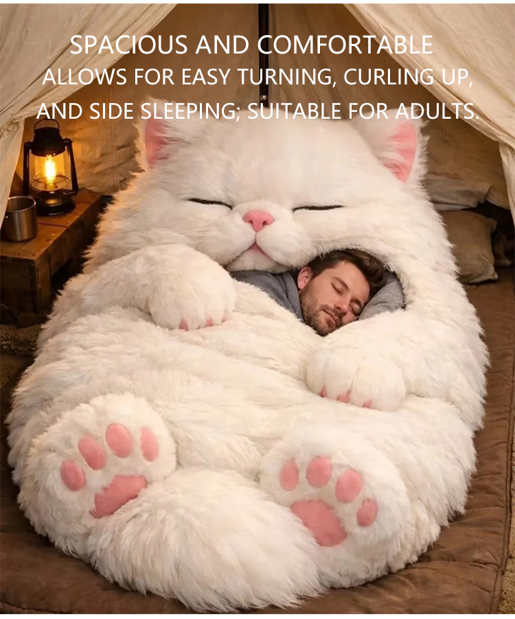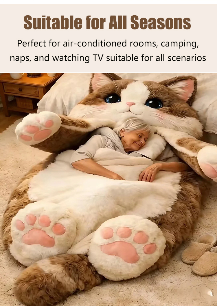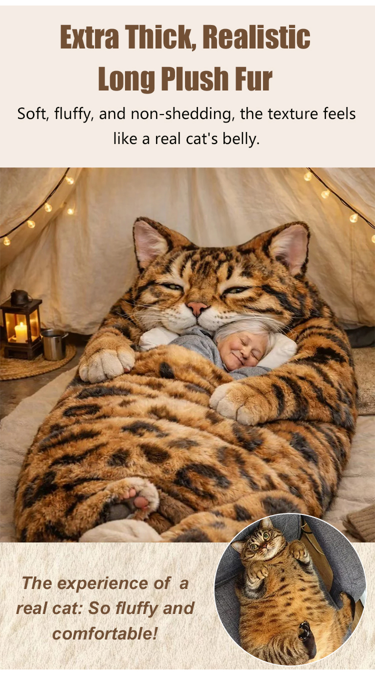Giant Realistic Cat Cuddle Sack 🐱 The Ultimate Anxiety Relief Plush | Extra Thick Thermal Fleece for Adults 🐾 Softest Hug Design