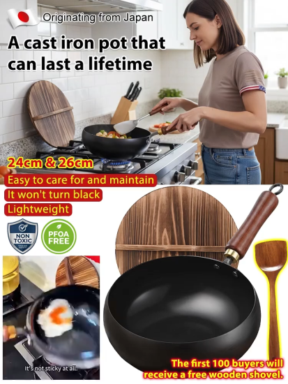 100% Toxin-Free: Pure iron surface. No chemicals, safefor your family. 🌿👶 Hand-forged in Tsubame-Sanjo (Japan's metal capital). This isn't just a pan; it's a UNESCO-recognized masterpiece used by state banquet chefs. 🏆 Ironclad Guarantee: Rusts or burns? Full refund in 14 days. No risks. 🤝💰 Flash Sale: 80% OFF + FREE Rosewood Spatula & Lid (First 100). Ends in 2 Hours! 🚨⏳